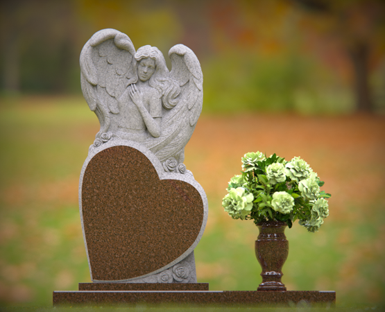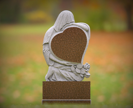 Sculpted Woman Embracing Heart Upright Granite Headstone