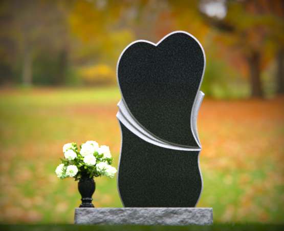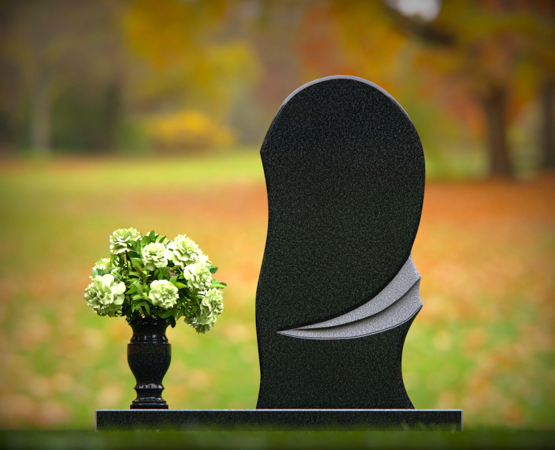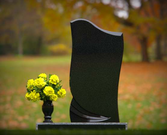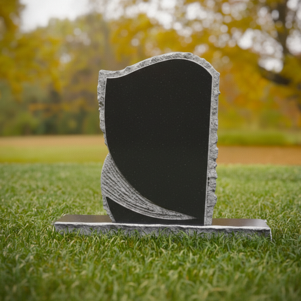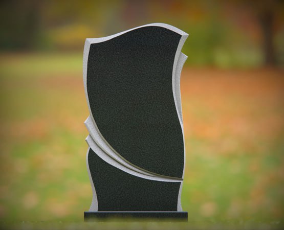 Asymmetrical Wave Upright Black Granite Headstone
