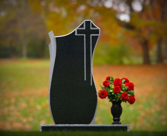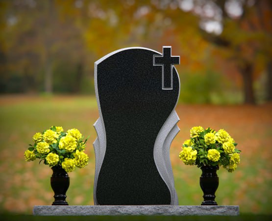 Wave-Profile Upright Headstone with Cross