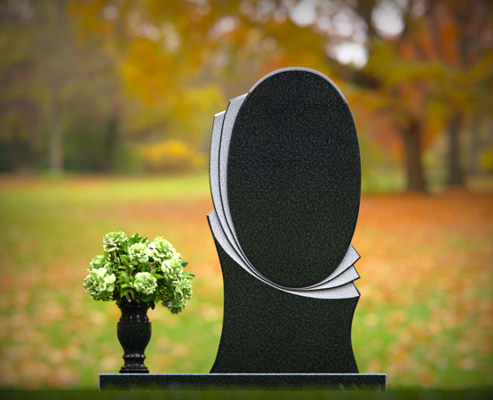 Oval Upright Headstone with Sculpted Layered Accent
