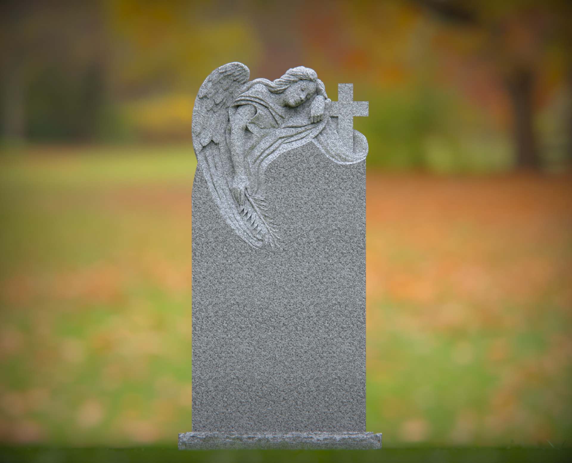 Angel and Cross Shape Granite Headstone